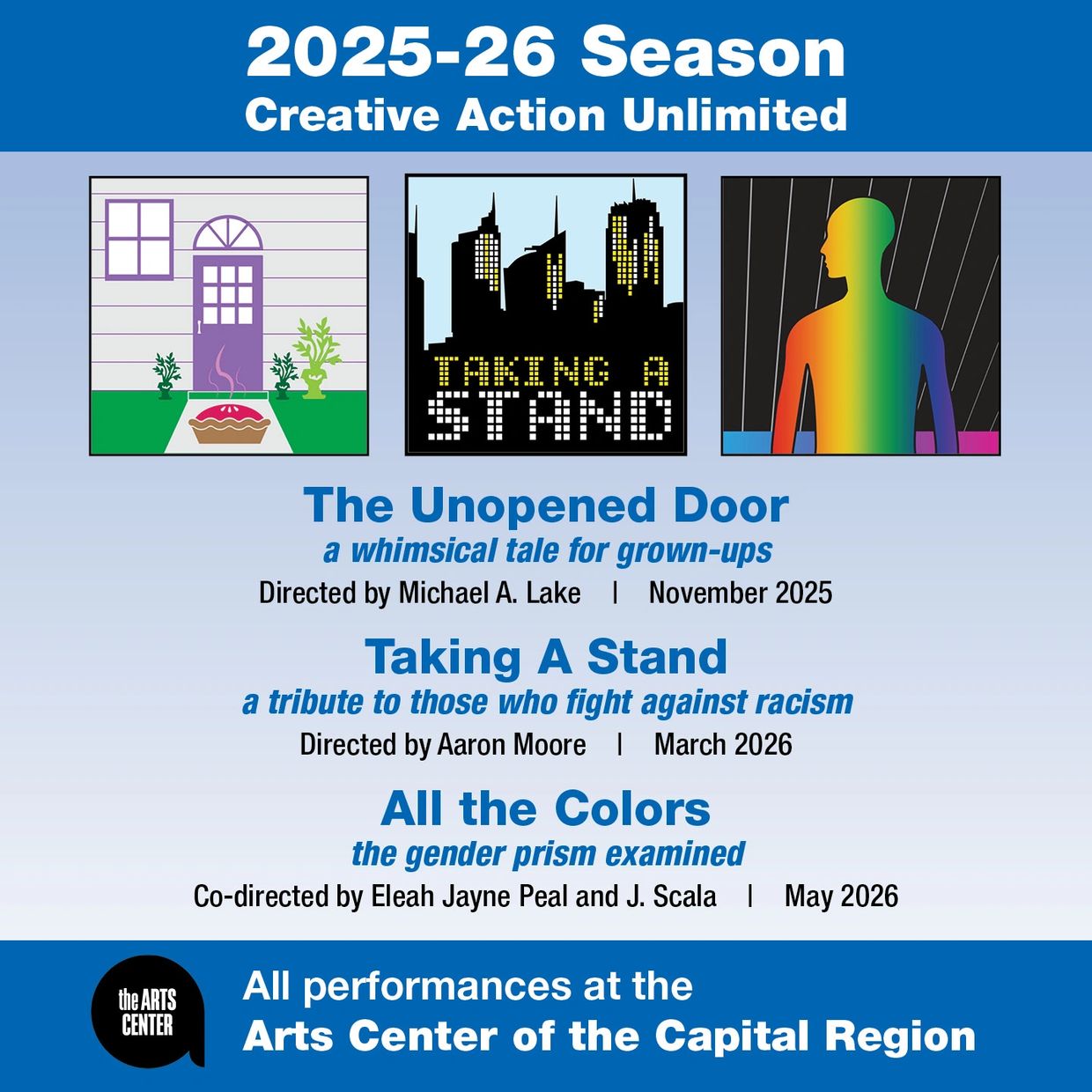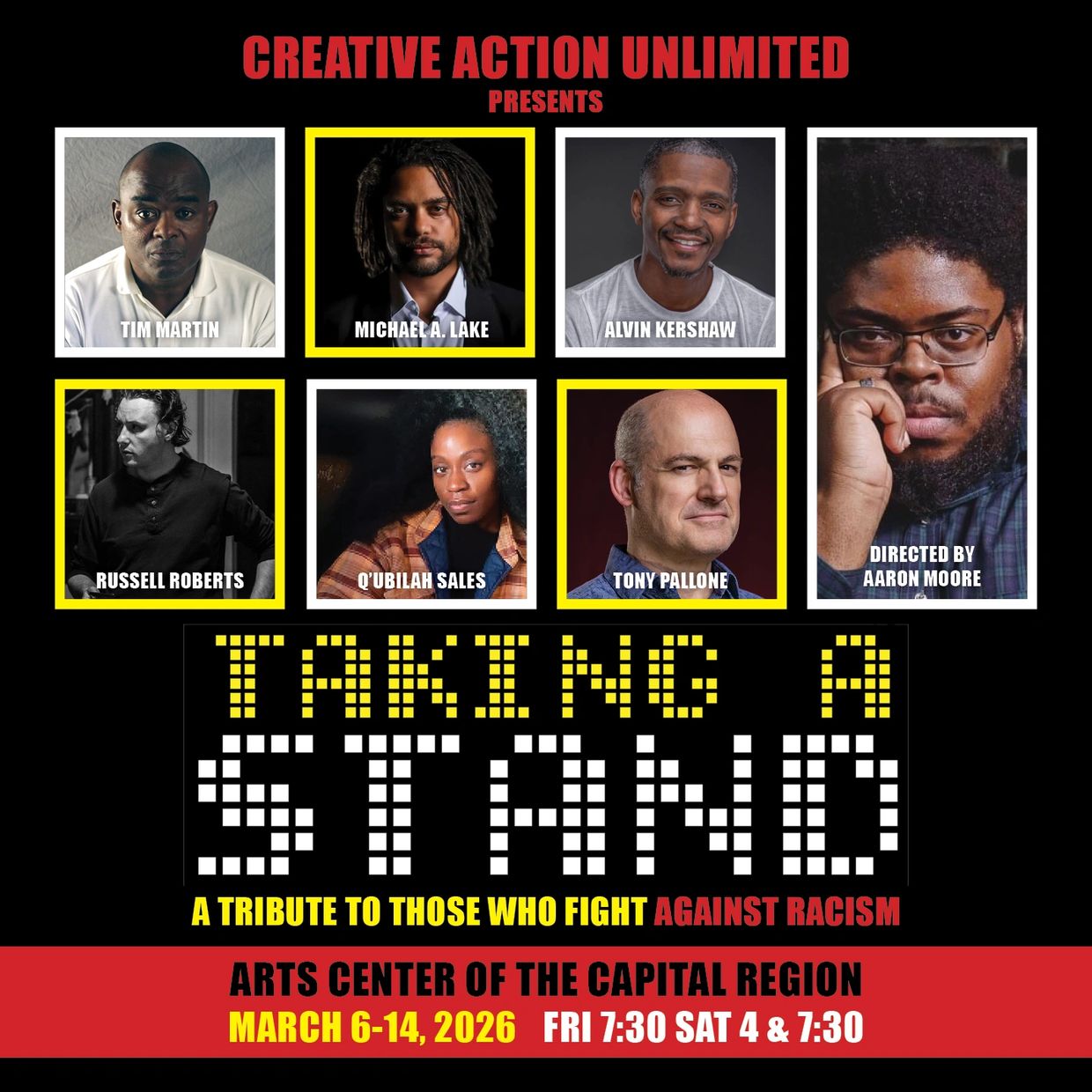 This mainstage production is an expanded version of a staged reading originally presented by CAU in 2024. Taking A Stand will focus on the ongoing fight against racism and honor those who work to challenge racism in America. This production will also include the opportunity to attend an anti-racism workshop as part of the event.